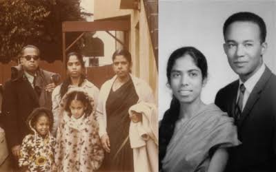 Ibu dari Kamala Harris, Shyamala Gopalan, merupakan peneliti kanker dari India, sedangkan ayahnya, Donald Harris, merupakan ekonom asal Jamaika, ayahnya mengajar di Universitas Stanford. Kedua orang tuanya bertemu saat masih menjadi mahasiswa di Universitas California, Berkeley.